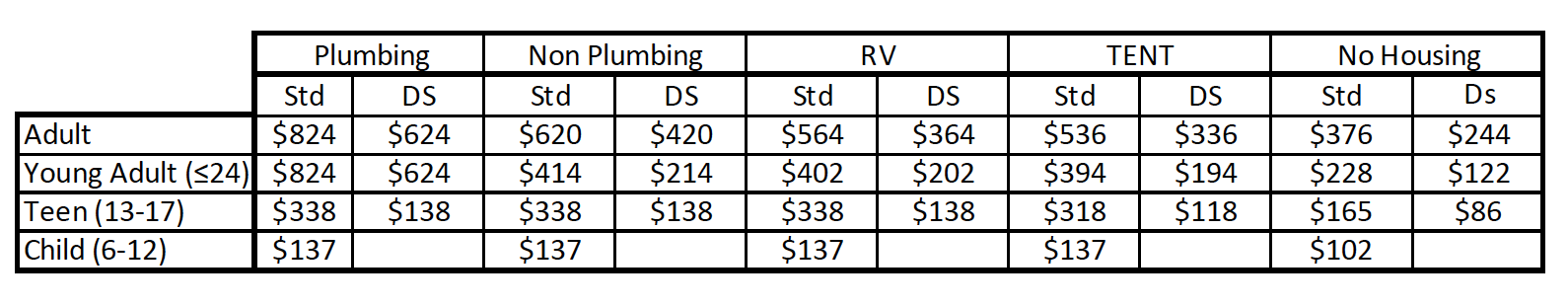 - In the rates table “Std” is standard rate; “DS” is Daily Staff Rate.