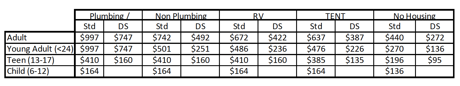 - Participants may choose their accommodation type (Plumbing, Non-Plumbing, Tent, RV, No Accommodation). See Accommodation Types here: https://www.indralaya.org/home/guest-information/accommodation-types-indralaya/