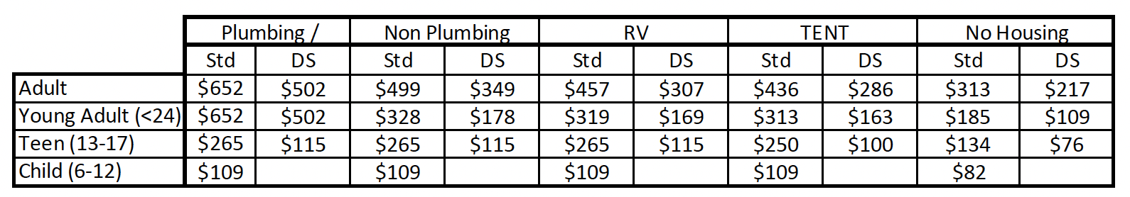• $250.00 – Tent - Teen (13-17)