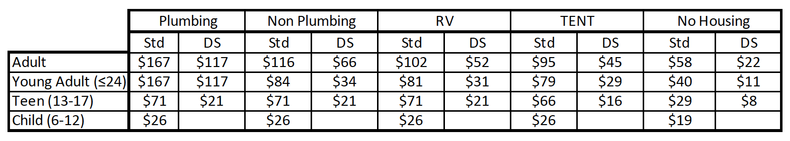 - If you are selecting Daily Staff please indicate in notes who in the party is taking the daily staff discount (available to adults, young adults, teens). Daily staff discounts (except for No-Accommodation rates) are indicated by checking Daily Staff as an “additional item.” The discount will be applied on checkout.